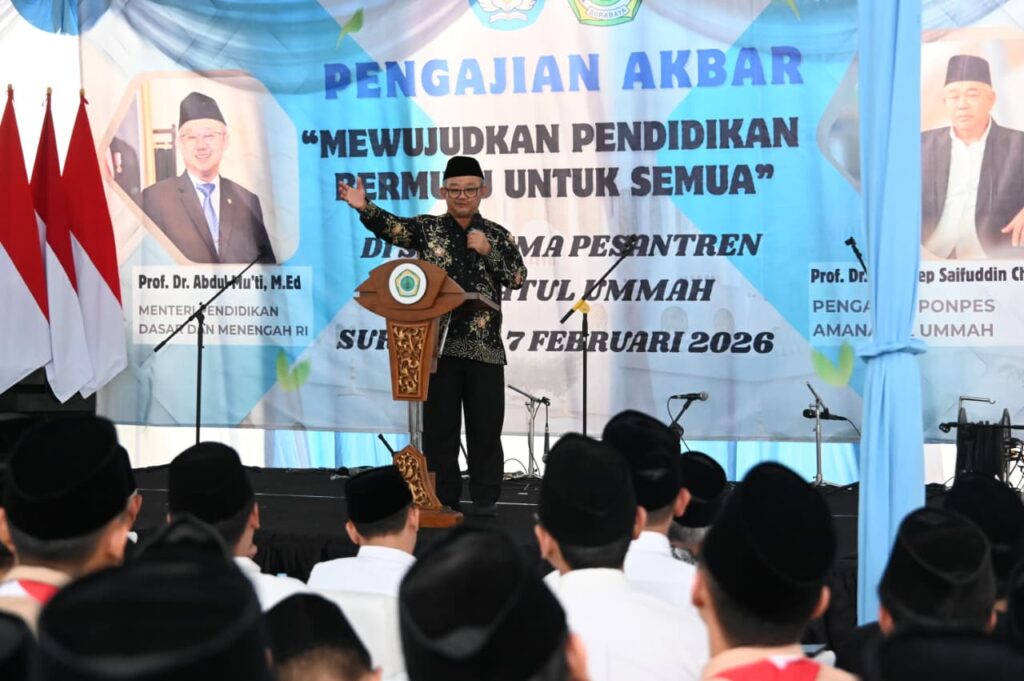 Surabaya, 8 Februari 2026 – Menteri Pendidikan Dasar dan Menengah (Mendikdasmen) Abdul Mu’ti menegaskan bahwa pendidikan bermutu harus dibangun melalui sekolah yang aman, nyaman, dan berkarakter. Sekolah, menurutnya, tidak hanya menjadi tempat transfer pengetahuan, tetapi juga ruang pembentukan keberanian intelektual, ketangguhan spiritual, serta kepekaan sosial peserta didik.